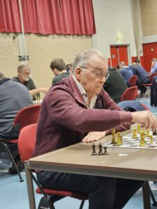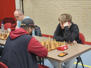 Bezoeker Mason Brouwer speelt een partij tegen Arnold Hoogvliet, die een bye heeft in ronde 6.